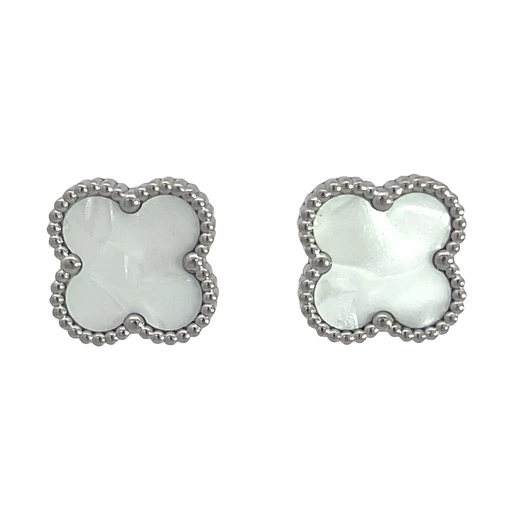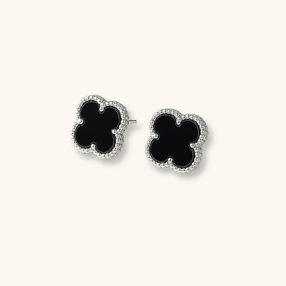 CLOVER auskarai su elegantiškais dobilų lapų motyvais – rinkitės juodus arba perlamutrinius. Prabangus sidabrinis atspalvis sukuria tobulą harmoniją ir suteikia šiam auskarui unikalaus žavesio, tinkančio tiek kasdieniam stiliui, tiek ypatingoms progoms.